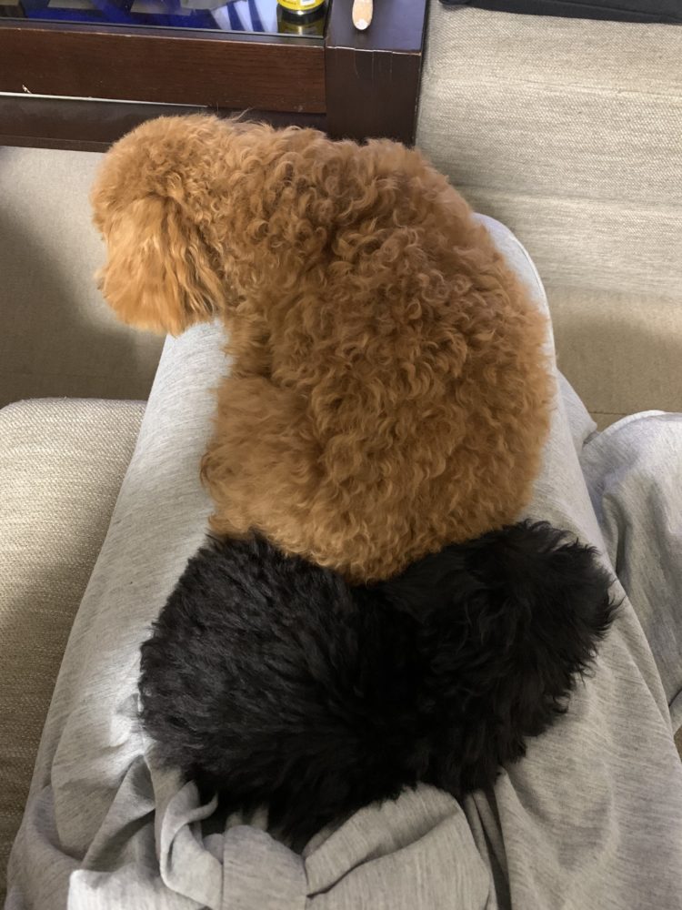帰ってきて私の膝の上でグーグー